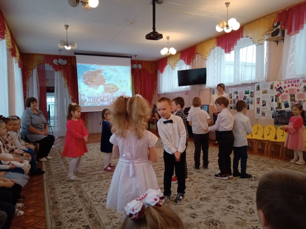 Дошколята из группы "Одуванчики" и группы "Солнышко" порадовали своих мам и бабушек песнями, стихами, танцами и конечно же приготовленными подарками. Мероприятие прошло очень трепетно и нежно.
