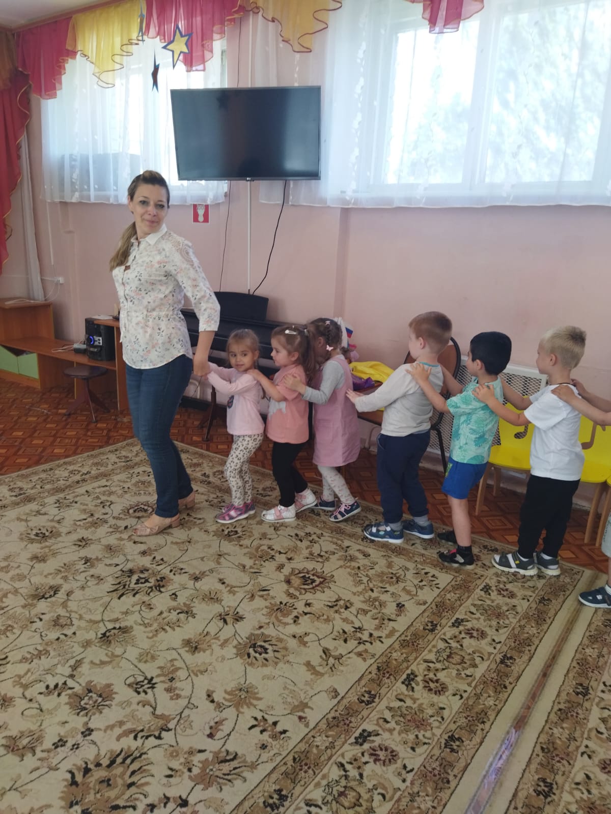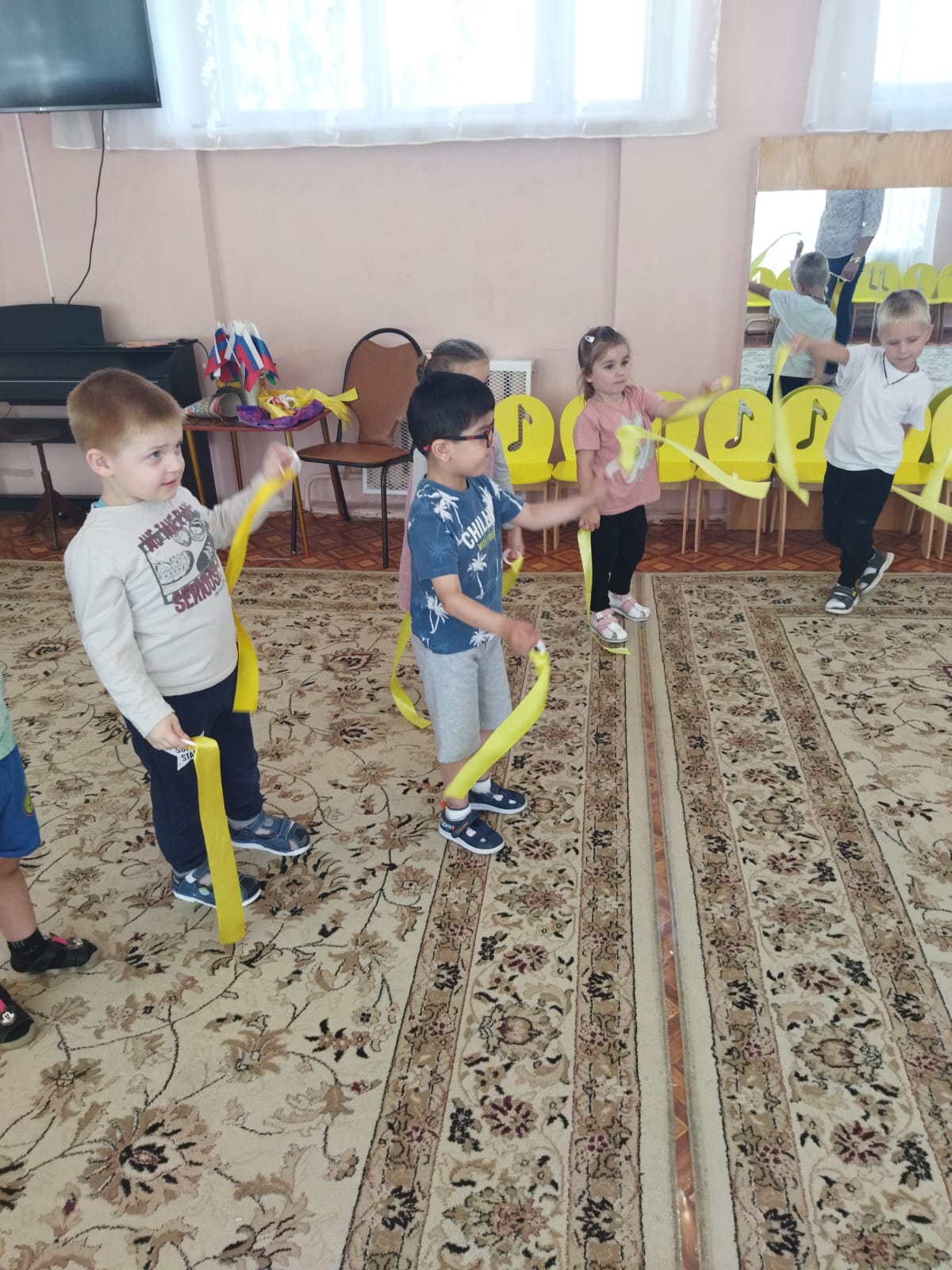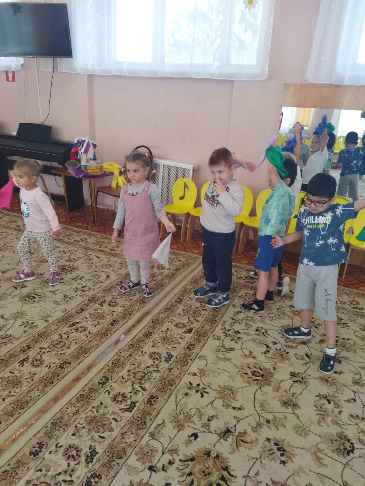 20 июля во 2-й младшей группе «Пчелки» прошло развлечение - музыкальное ассорти «Песенка гуляет по свету». Мероприятие прошло весело, интересно. Путешествуя на паровозике дети посетили станцию «Колпачковая», где задорно танцевали в колпачках под песенку «Веселые колпачки». На станции «Флажковая» дети выполняли танцевальные движения «Мир похож на цветочный луг», а на станции «Цветные платочки» детям было предложено поиграть с платочками под песенку «Платочек». На станции «Солнечная» исполнили песенку «Солнечные лучики», а на станции «Цветочная» поиграли с цветами под песенку «Цветик-семицветик». Дети получили эмоционально-положительный заряд и радостное настроение.