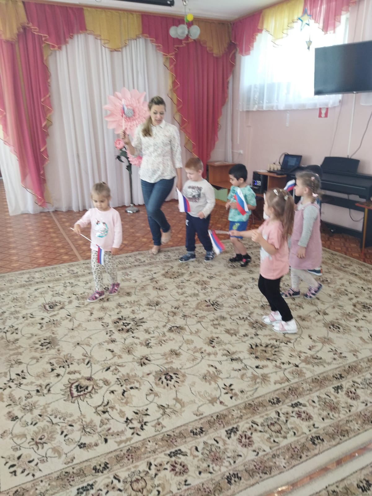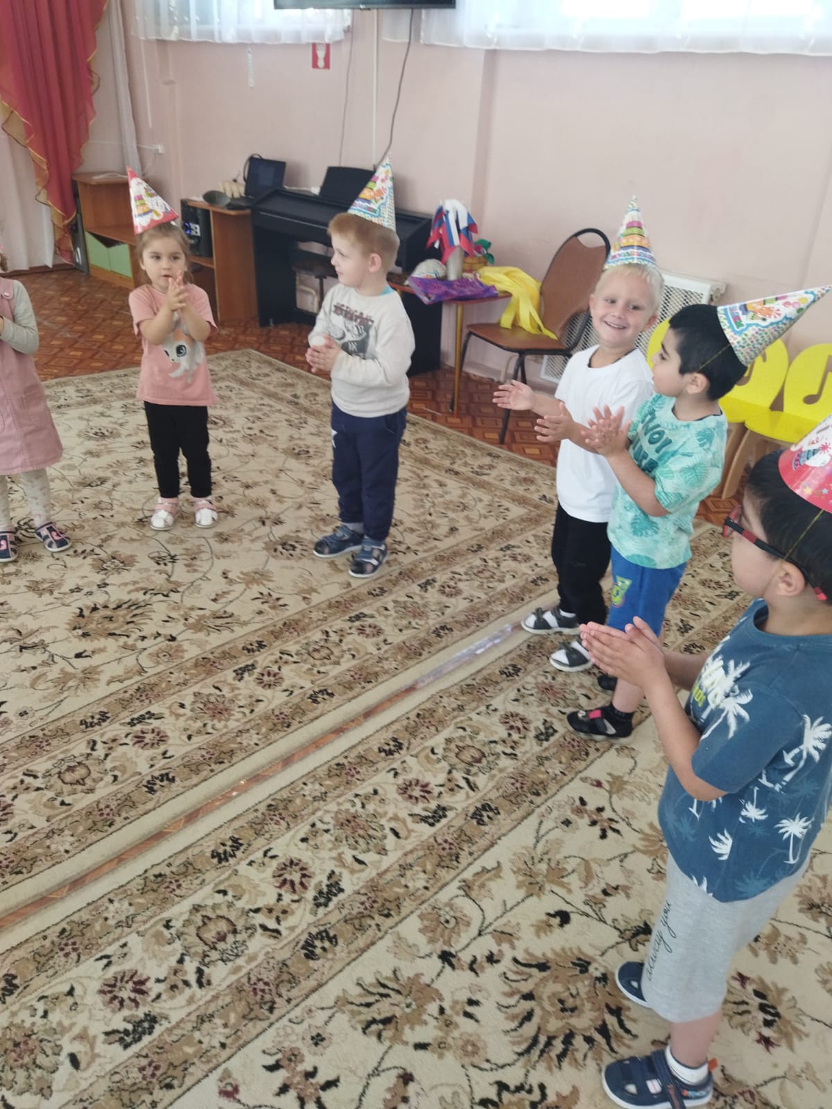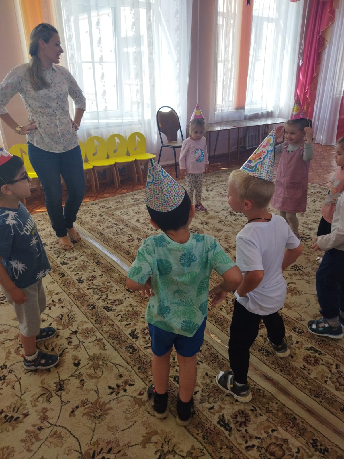 20 июля во 2-й младшей группе «Пчелки» прошло развлечение - музыкальное ассорти «Песенка гуляет по свету». Мероприятие прошло весело, интересно. Путешествуя на паровозике дети посетили станцию «Колпачковая», где задорно танцевали в колпачках под песенку «Веселые колпачки». На станции «Флажковая» дети выполняли танцевальные движения «Мир похож на цветочный луг», а на станции «Цветные платочки» детям было предложено поиграть с платочками под песенку «Платочек». На станции «Солнечная» исполнили песенку «Солнечные лучики», а на станции «Цветочная» поиграли с цветами под песенку «Цветик-семицветик». Дети получили эмоционально-положительный заряд и радостное настроение.