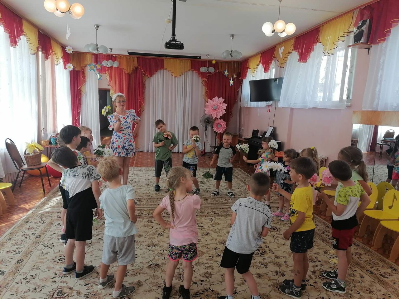 4 августа ребята средней группы "Семицветик" отправились в необычное путешествие. Дети получили телеграмму от летнего месяца Августа, в которой сообщалось что если дети пройдут эстафетные испытания, то получат приз-сюрприз. Дети вместе с Ромашкой, подружкой Августа, участвовали в эстафета, конкурсах. Собирали ромашки, грибы, морковь. Катались на лошадях. В конце развлечения дети от Августа получили угощения и цветы, с которыми исполнили хороводный танец по показу гостьи-Ромашки.