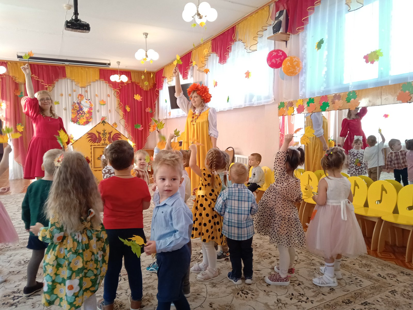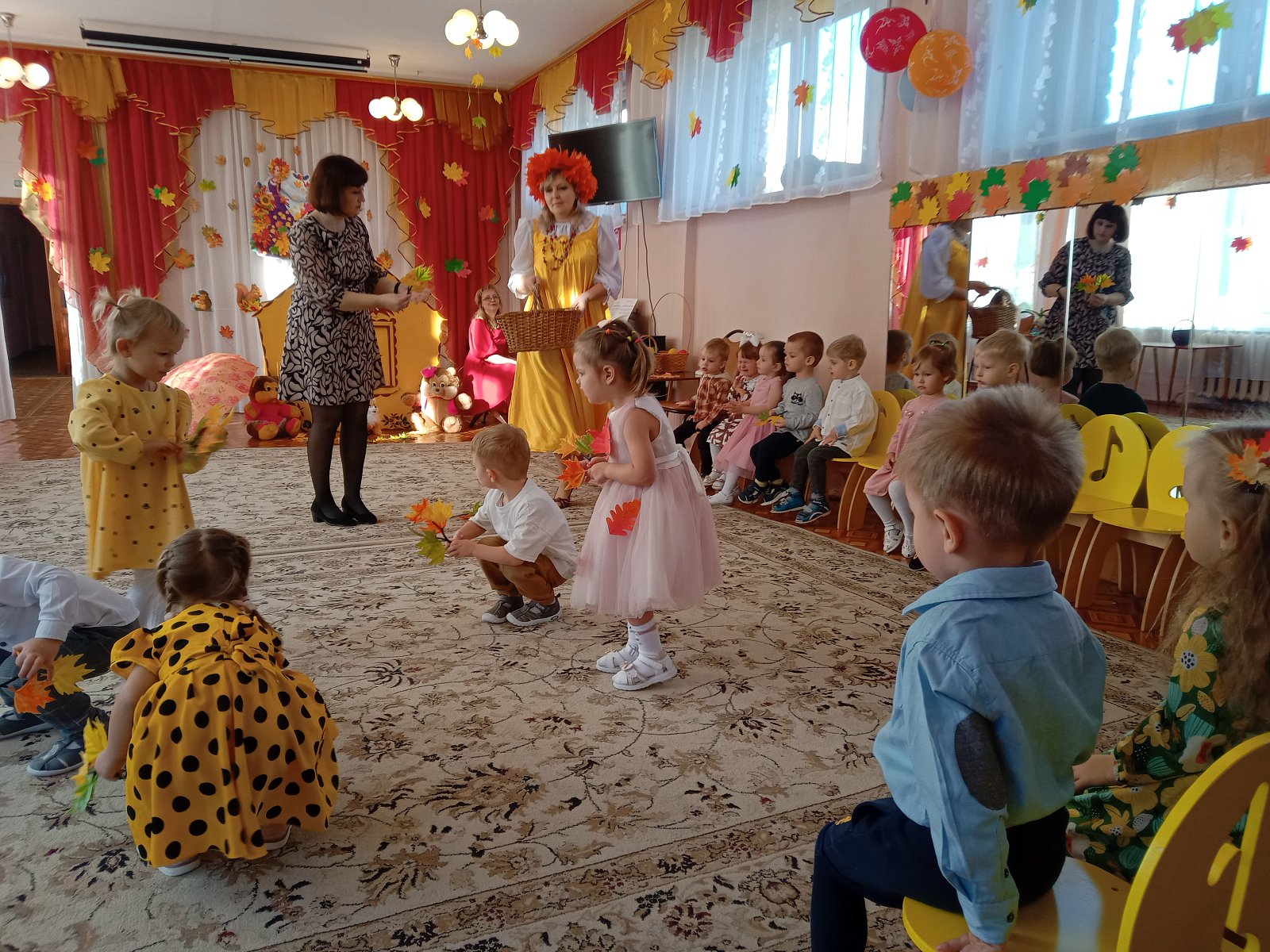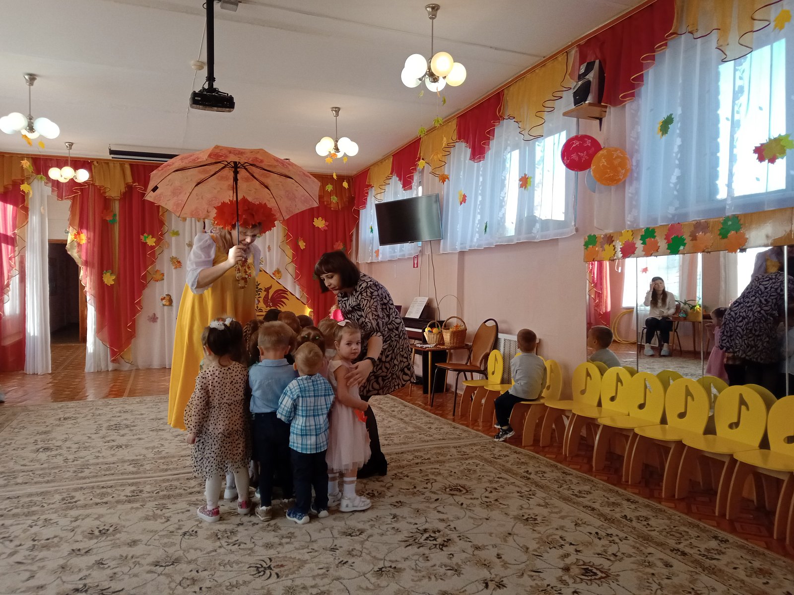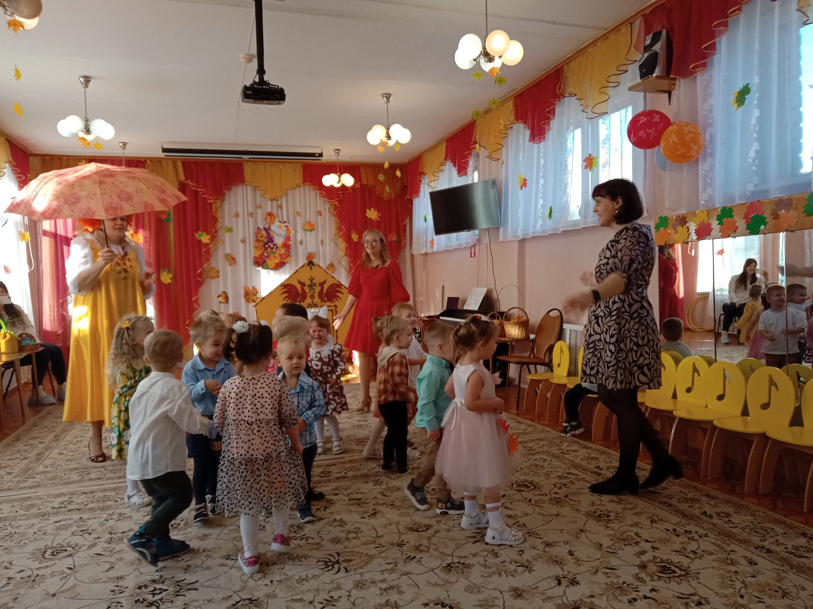 Праздник в детском саду – это всегда удивительные чудеса, волшебные краски и звонкий смех воспитанников. Красавица Осень заглянула во 2-е младшие группы «Утята» и «Непоседы» и никого не оставила без внимания, а дети встречали её как гостью — с песнями, танцами, играми, шутками да прибаутками! Осень одарила детей осенними листьями и спрятала детей от дождика.