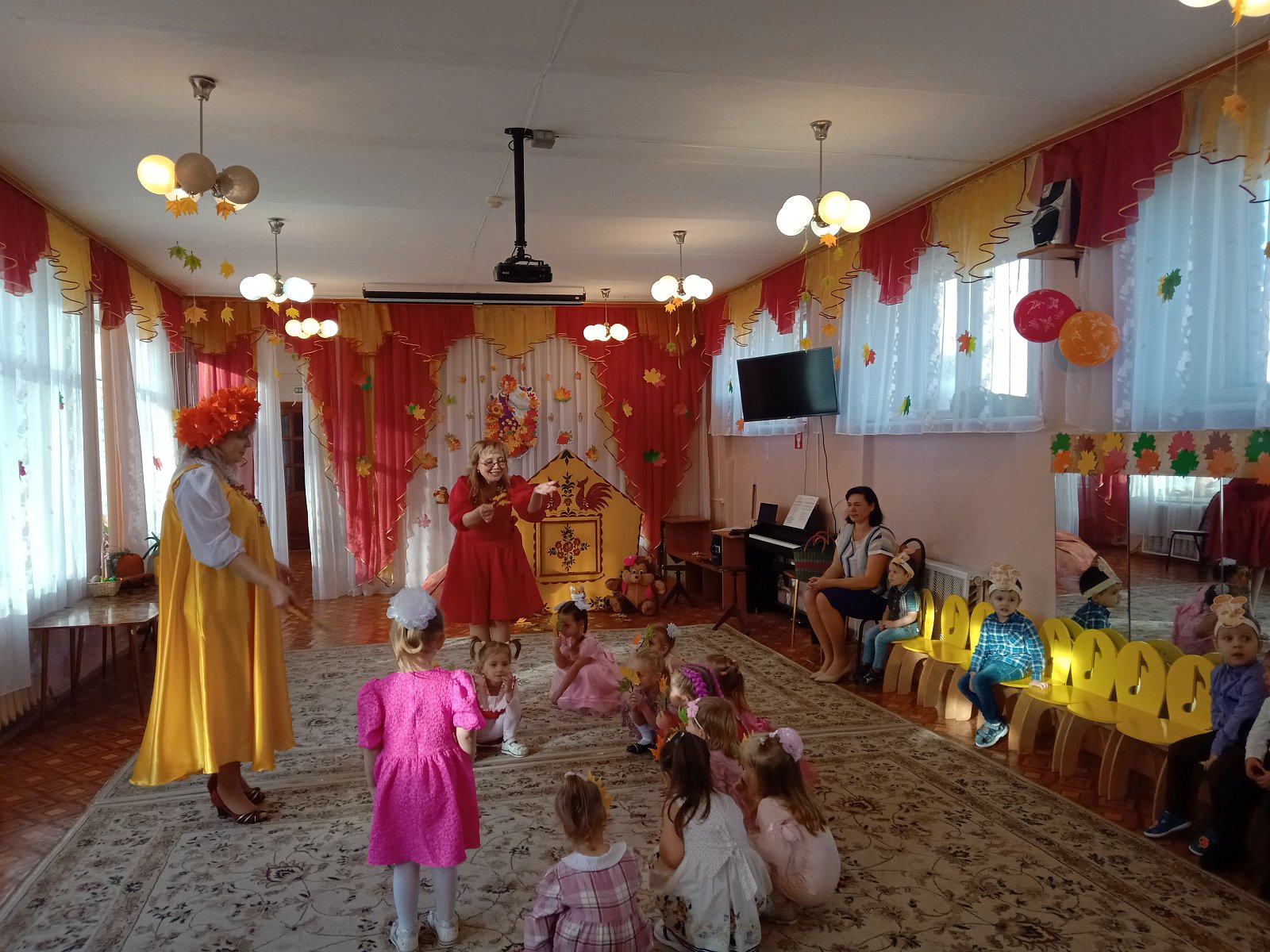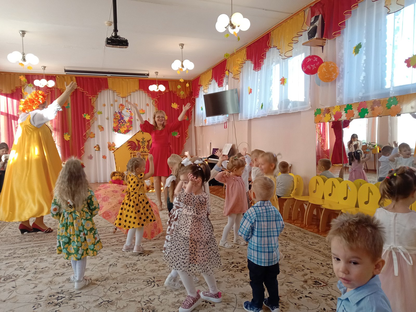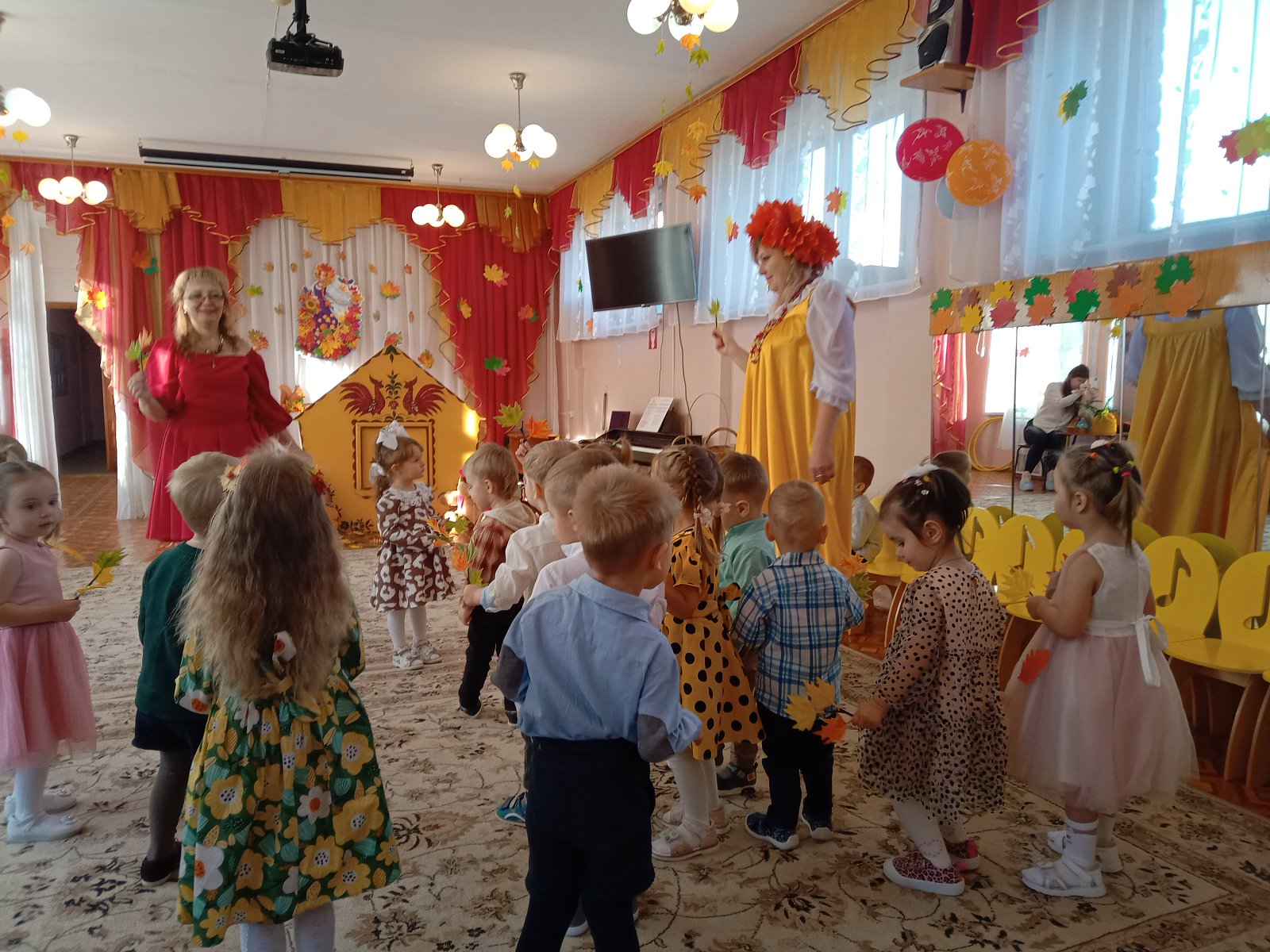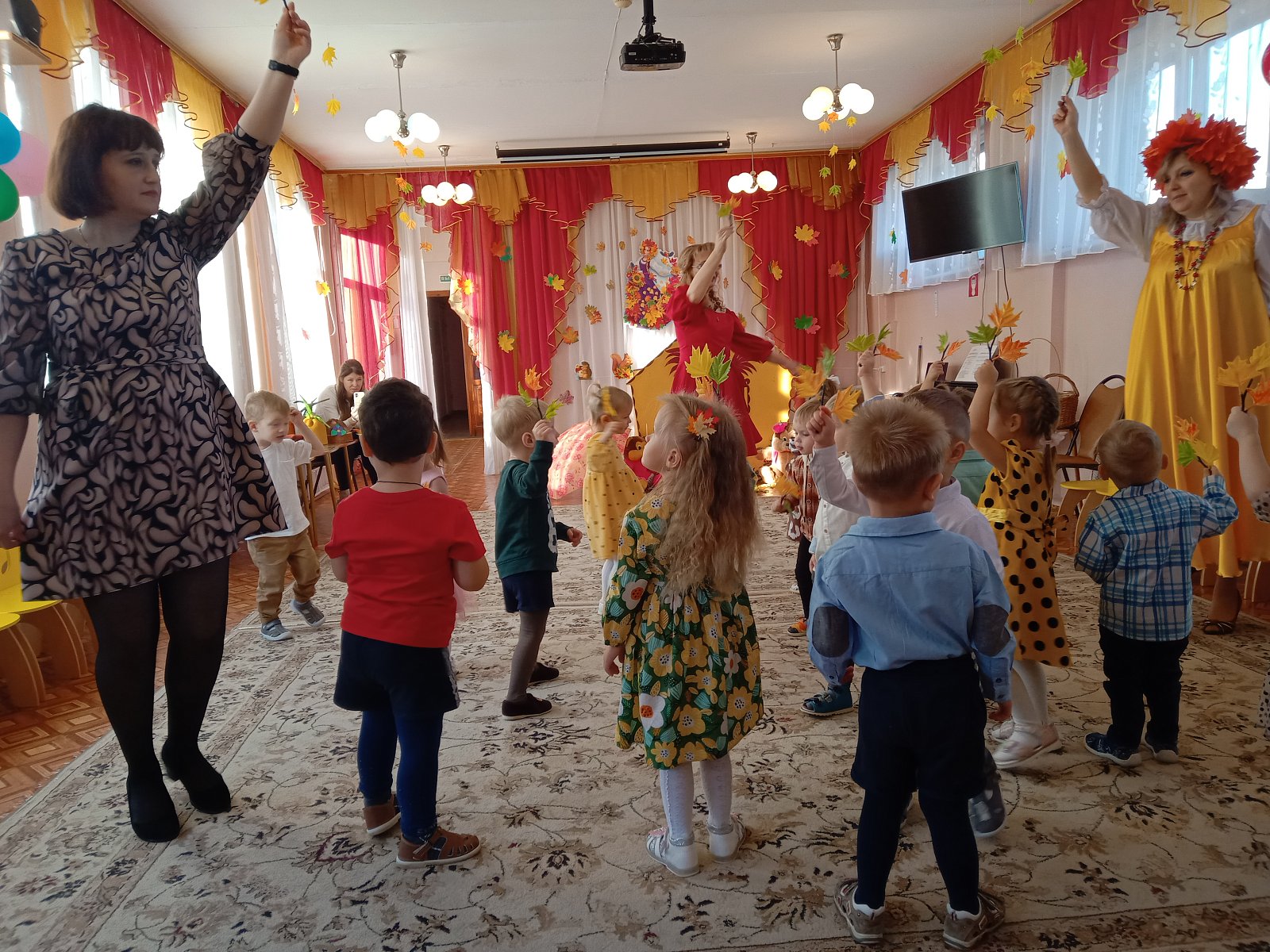 Праздник в детском саду – это всегда удивительные чудеса, волшебные краски и звонкий смех воспитанников. Красавица Осень заглянула во 2-е младшие группы «Утята» и «Непоседы» и никого не оставила без внимания, а дети встречали её как гостью — с песнями, танцами, играми, шутками да прибаутками! Осень одарила детей осенними листьями и спрятала детей от дождика.
