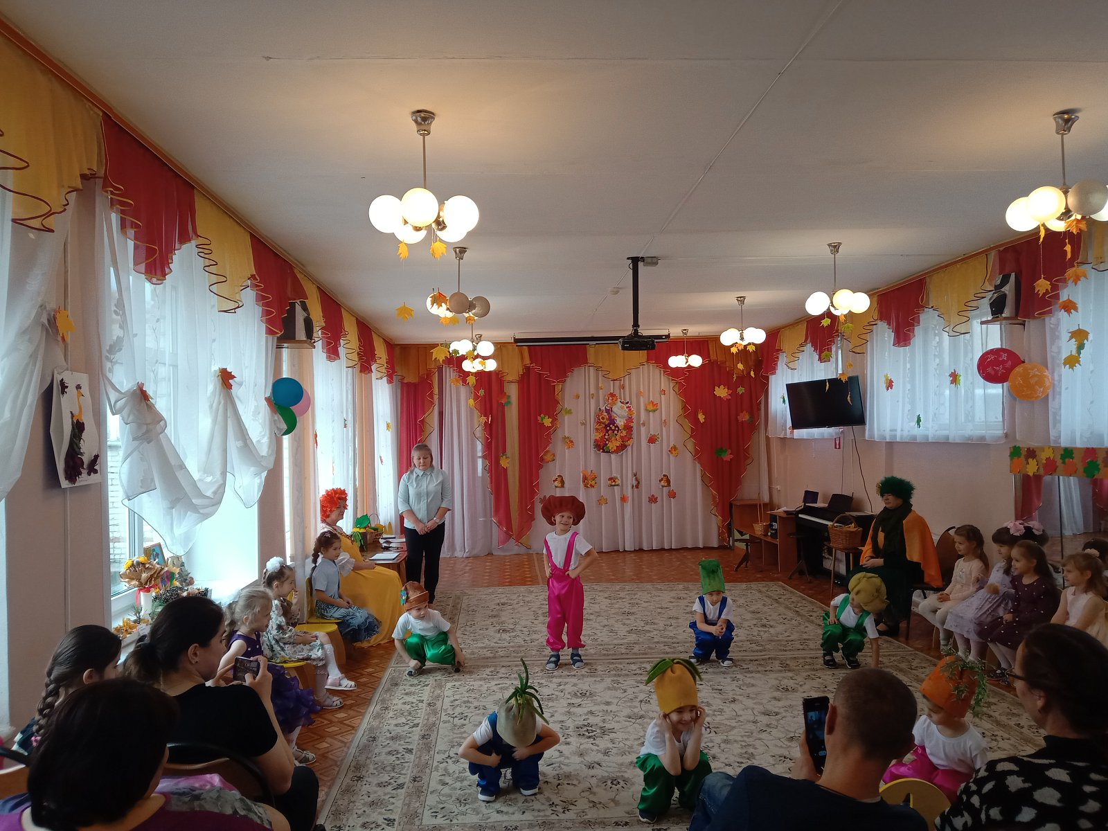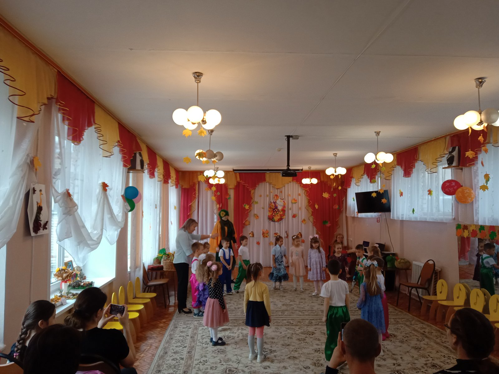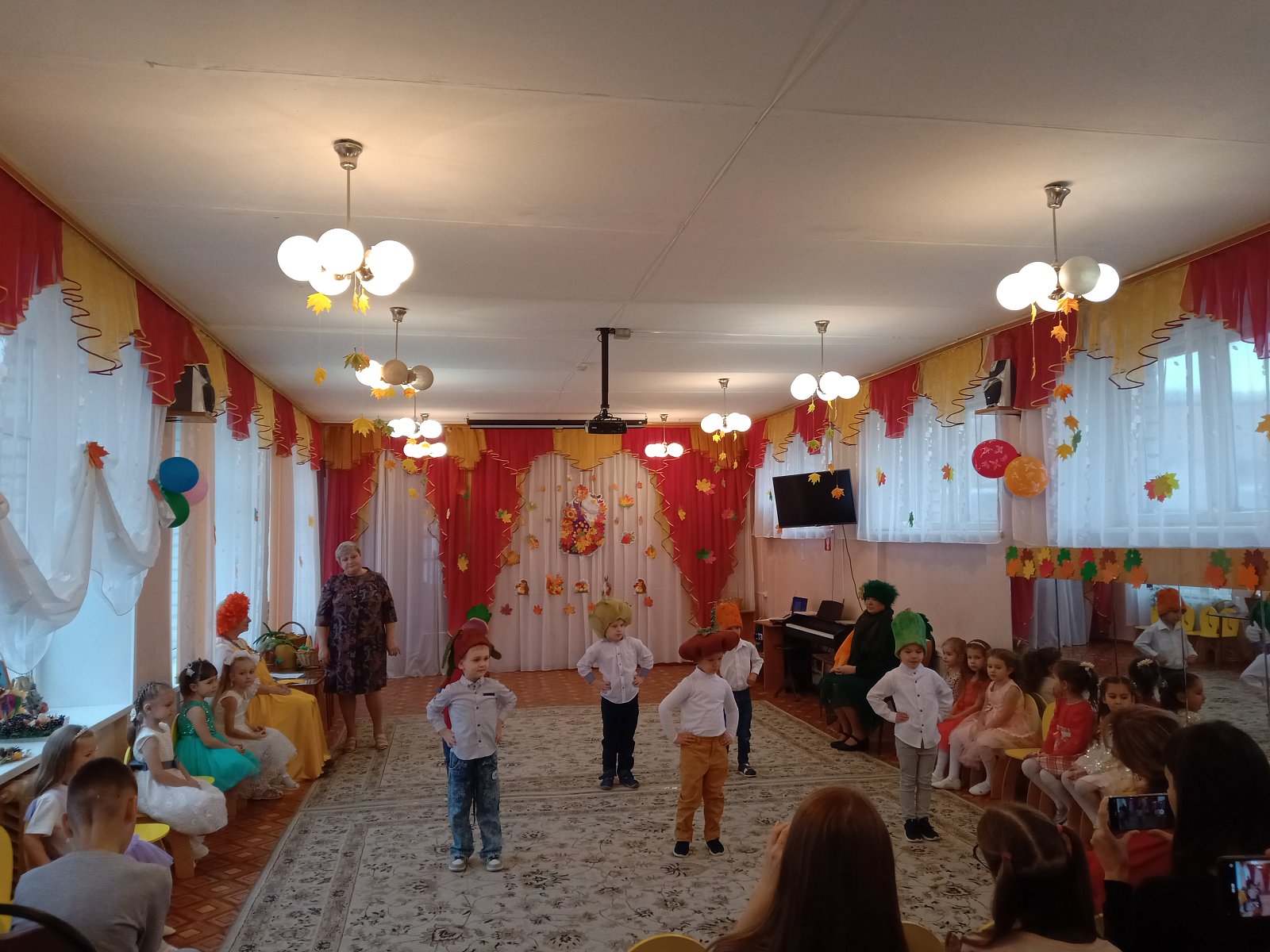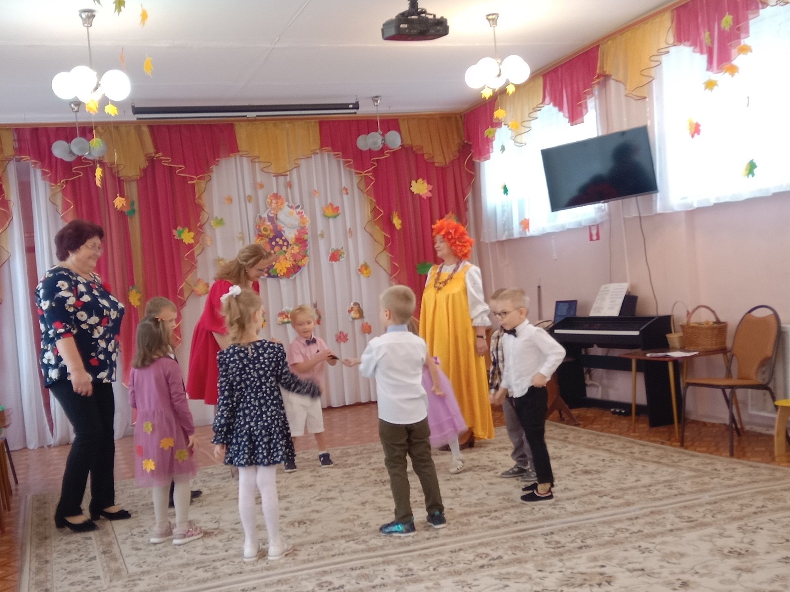 Праздник Осени в детском саду является одним из любимейших мероприятий, ведь именно во время торжественного утренника ребятишки могут и повеселиться и и на других посмотреть и себя показать. 31 октября ребята старших групп "Котята", "Семицветик", «Матрешки» прошел праздник "Осенние проделки Кикиморы". На утреннике славили Осень песнями, стихами, задорными танцами. И конечно же угощение-дары осени, самый приятный и вкусный момент. Утренник прошёл на веселой и приятной нотке!