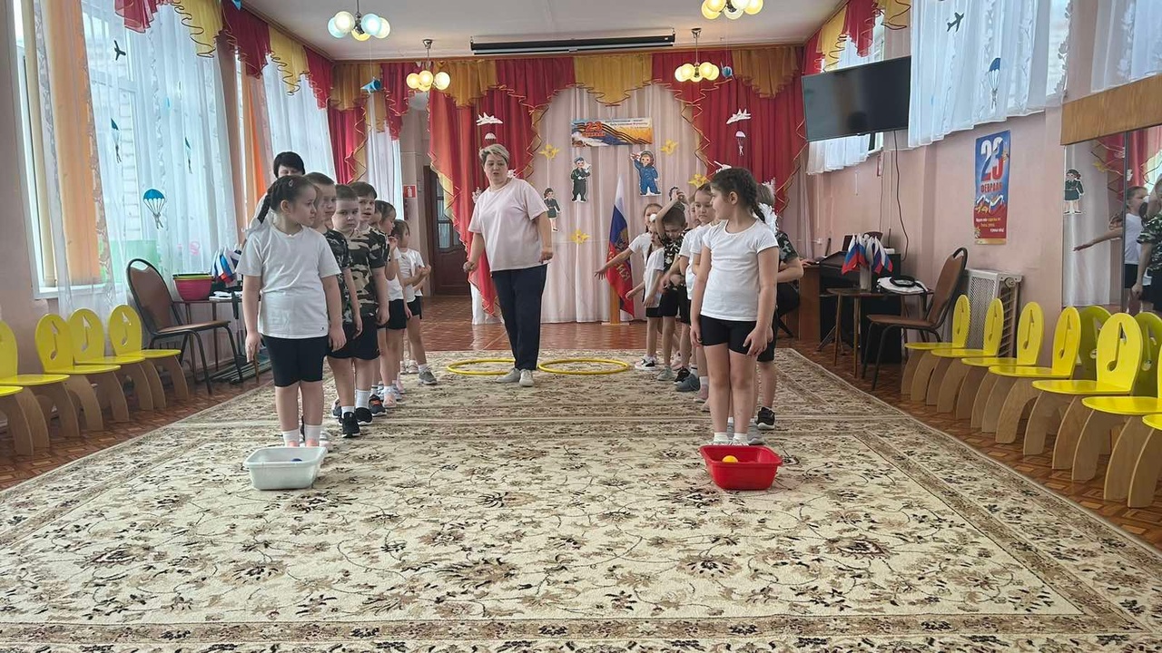 22 февраля был проведен музыкально-спортивный праздник "Армейские учения" для подготовительных групп "Одуванчик" и "Солнышко". Во время проведения дети читали стихотворения, пели песни, отгадывали загадки на военную тематику. Было проведено несколько командных соревнований-эстафет "Боевая тревога", "Доставь донесение", "Пограничники и нарушители", "Санитары". Ребята вместе с педагогами от души поздравляли всех пап и дедушек с наступающим праздником! Все стихи и песни были для них.