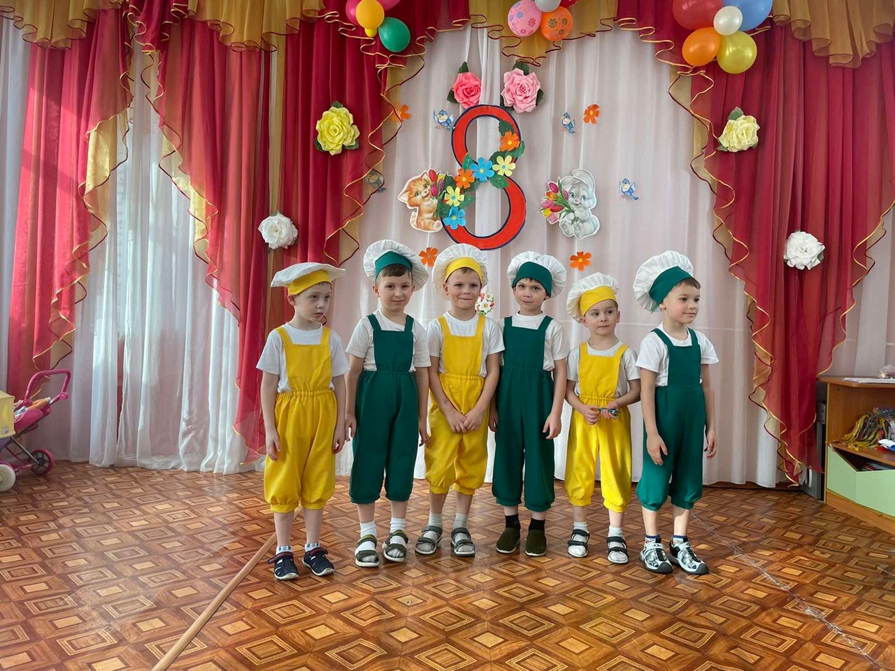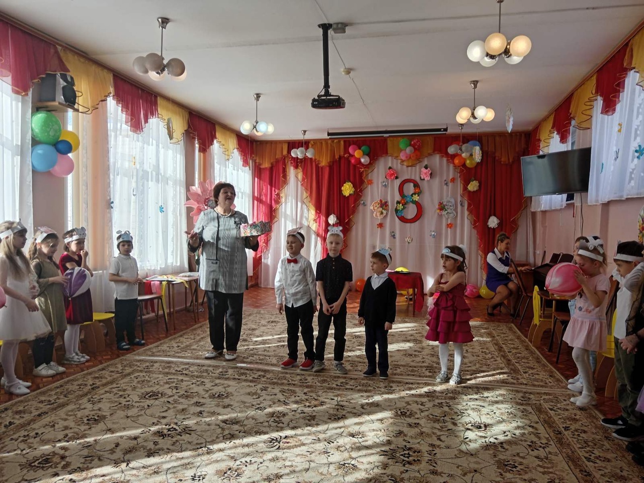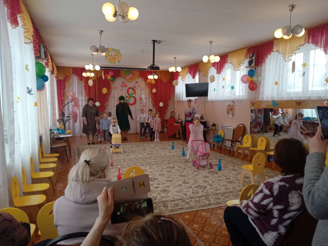 В предверии праздника 8 Марта в дружной, по семейному тёплой атмосфере в детском саду прошли праздничные мероприятия. Нежные стихи и песни о маме и бабушке звучали на празднике. Любимым мамочкам посвящали танцы, для нежных бабушек звучали красивые стихи.
