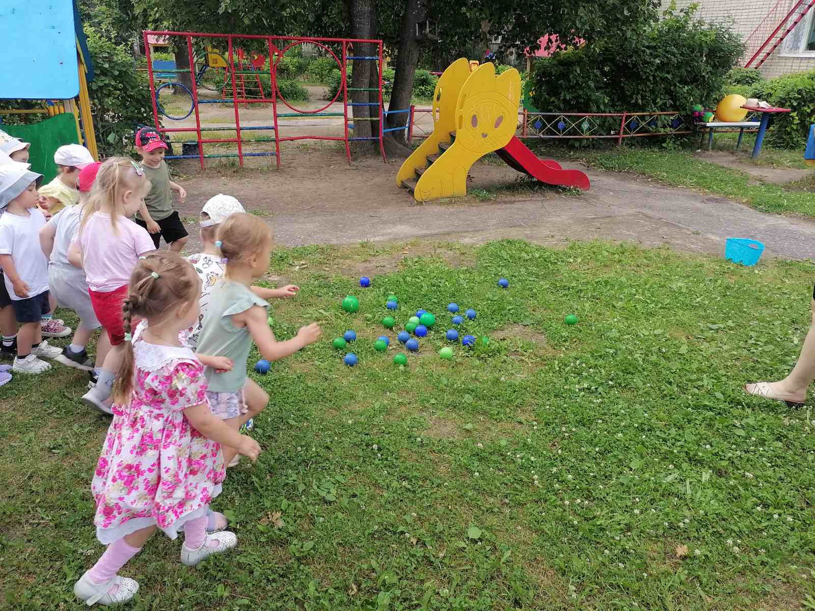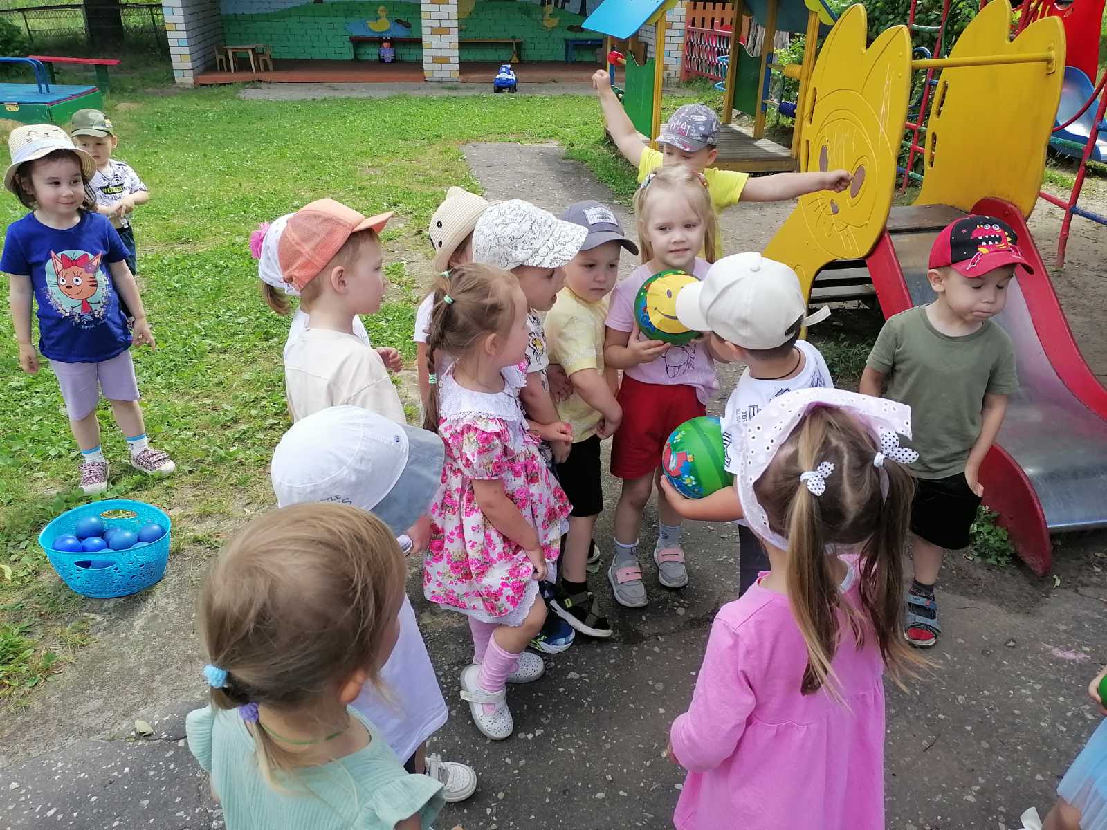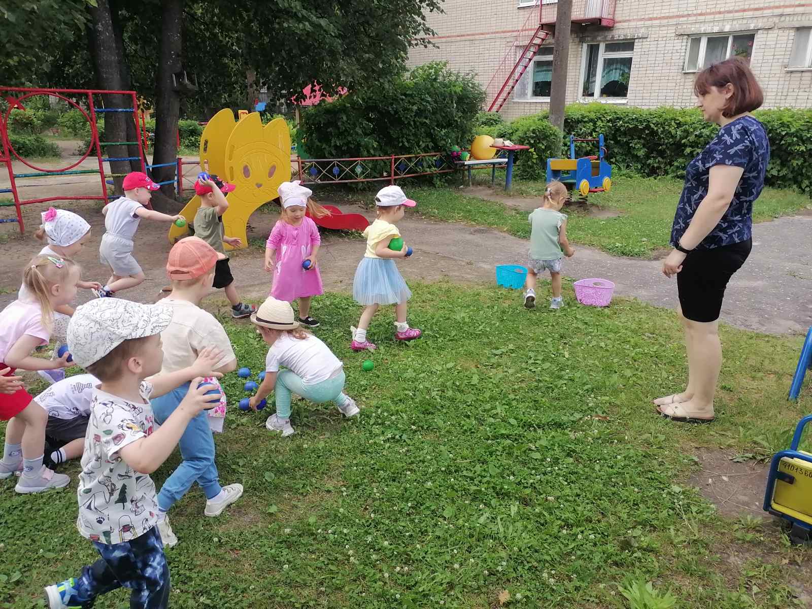 19 мая во 2-й младшей группе «Утята» прошел досуг «Забавы с мячом» с целью укрепления здоровье детей; создания радостного, весёлого настроения; развития ловкости в ловле и бросание мяча; развития интереса к малым фольклорным жанрам; развития желания общаться между собой в непринуждённой обстановке. Дети вспомнили стихотворение С.Я.Маршака «Мой веселый звонкий мяч», а затем поиграли в игры «Пузырь», «Собери мячики», «Скачем как мячики», «Попади в ворота», «Догони мяч». Дети получили хорошее настроение и много положительных эмоций.