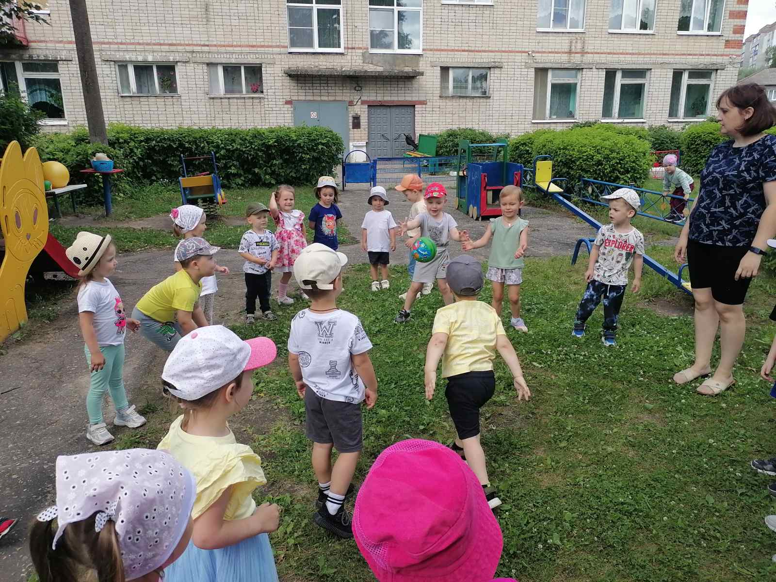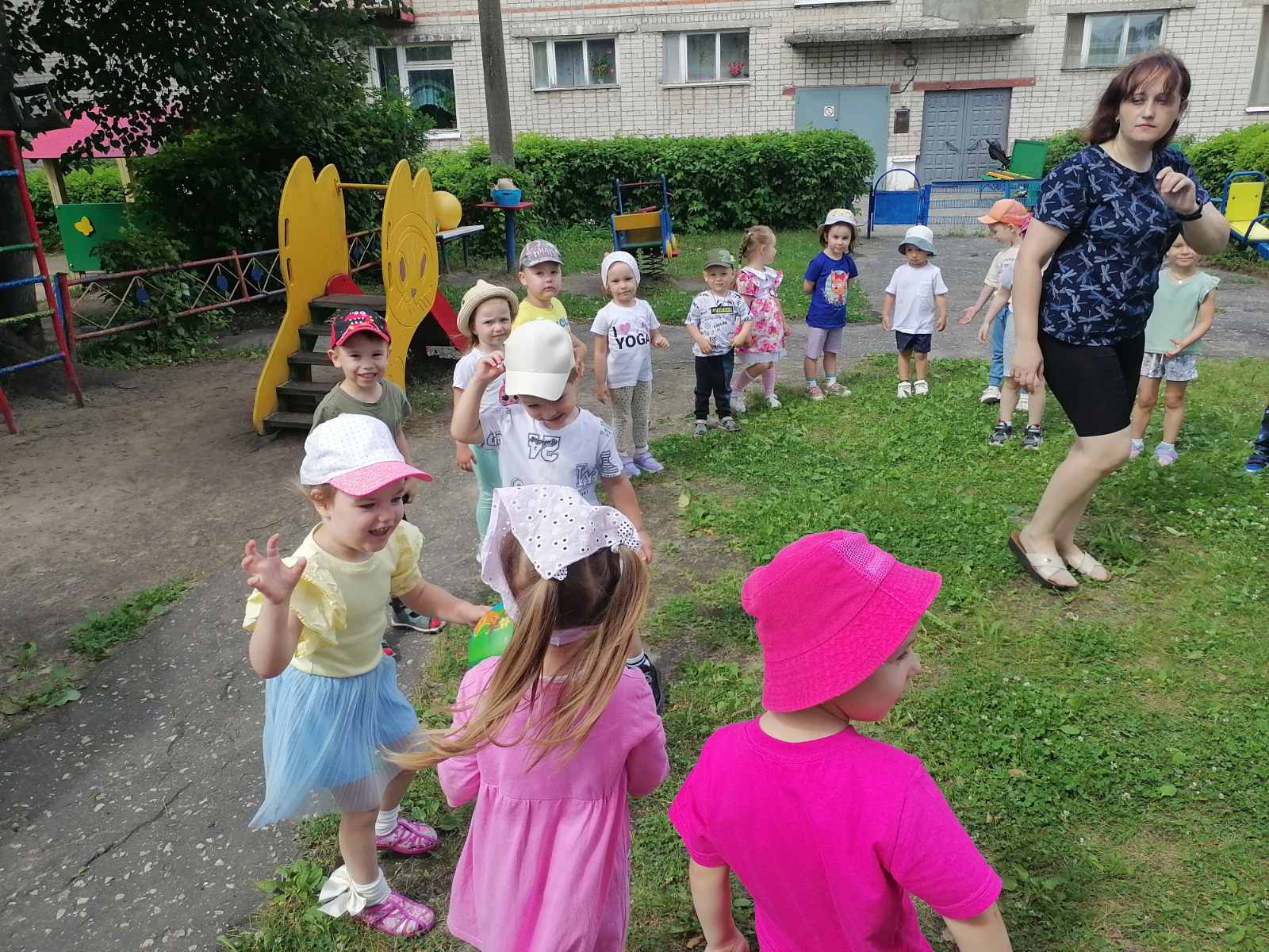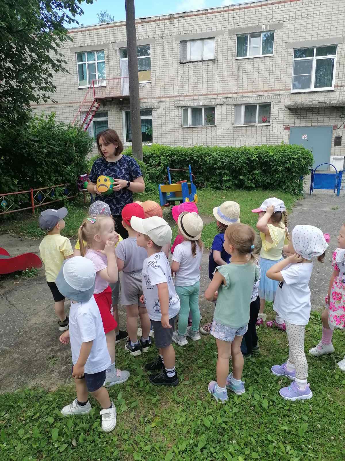 19 мая во 2-й младшей группе «Утята» прошел досуг «Забавы с мячом» с целью укрепления здоровье детей; создания радостного, весёлого настроения; развития ловкости в ловле и бросание мяча; развития интереса к малым фольклорным жанрам; развития желания общаться между собой в непринуждённой обстановке. Дети вспомнили стихотворение С.Я.Маршака «Мой веселый звонкий мяч», а затем поиграли в игры «Пузырь», «Собери мячики», «Скачем как мячики», «Попади в ворота», «Догони мяч». Дети получили хорошее настроение и много положительных эмоций.