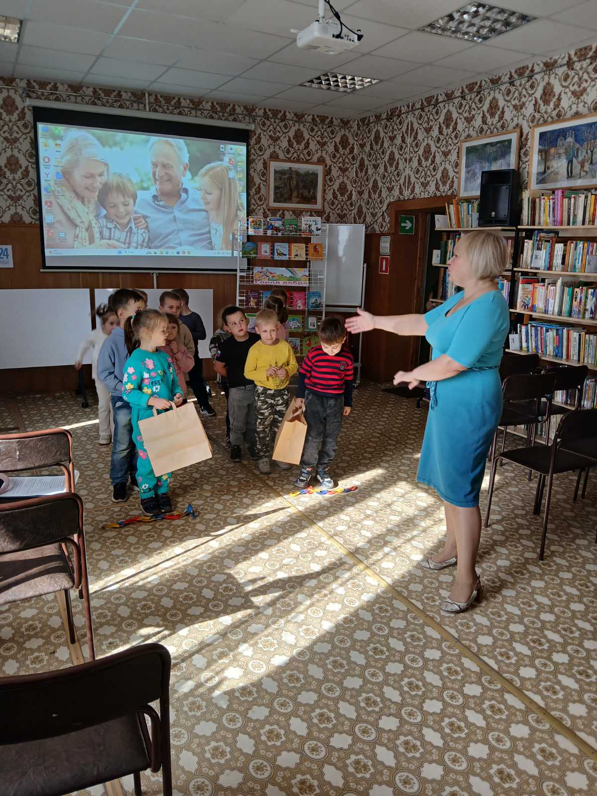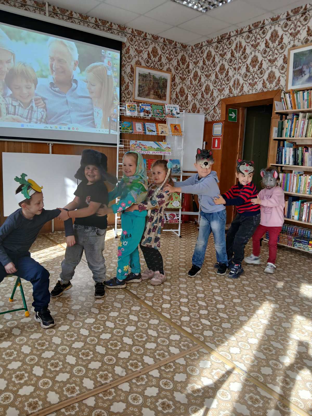 03 октября дети старшей группы "Бабочки" посетили филиал библиотеки №1, где дети поучаствовали в игровой программе в честь Дня пожилого человека и отправились в путешествие в город Добра. Дети отгадывали загадки о сказочных героях, инсценировали сказку " Репка", угадай животное и его детеныша , помогали бабушке и дедушке сходить в магазин за покупками и навести порядок дома( собирали пуговицы). Познакомились в с выставкой книг на тему " Дорога добра".