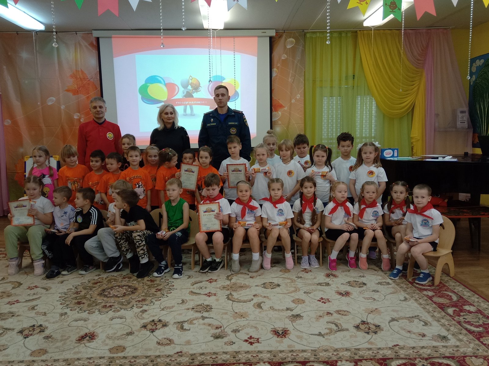 Ребята весело и дружно участвовали в предложенных конкурсах. Главная задача прошедшей игры: закрепить знания детей о роли огня в жизни человека, о пожарной безопасности, привить навыки осторожного обращения с огнем. Ребята повторили в игровой форме номера телефонов экстренных служб, правила пользования электрическими приборами. Хочется отметить, что в одном из конкурсов» эвакуация при пожаре» дошколята не забыли использовать средства индивидуальной защиты. Игра прошла на позитивном уровне. Все участники были награждены сладкими призами и почетными грамотами.