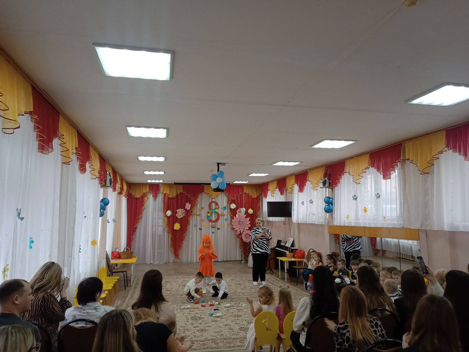 4 марта в группе «Солнышко» прошел праздник, посвященный 8 Марта «Шапокляк в гостях у ребят". Ребята поздравили своих мам и бабушек с весенним праздником. Они рассказывали для них стихи, а вместе с героями - Весенней Веснушкой и Шапокляк пели песни, танцевали, водили хороводы. На прощание Шапокляк подарила детям волшебную книгу. Праздник был согрет лучами солнца, детскими улыбками, украшен радостью. Всем было весело!