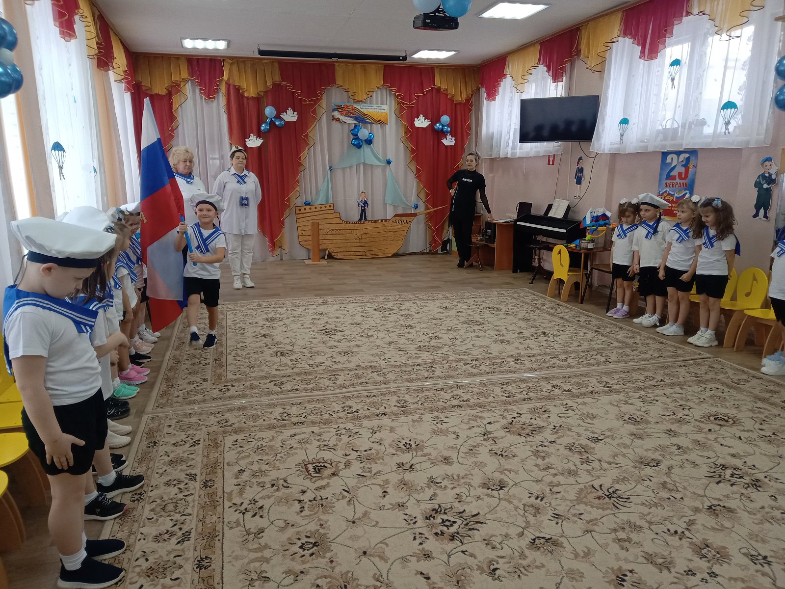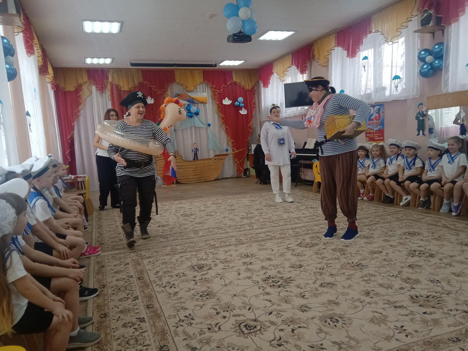Фото с праздника "Морское путешествие", посвященное Дню защитника Отечества в старших группах